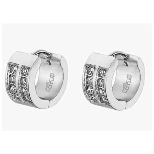 Pendientes LS2393-4/1 de la colección Lotus Style para hombre. Fabricados en acero inoxidable, el diseño de estos aros plateados consta de dos filas de circonitas y cierre de clip.