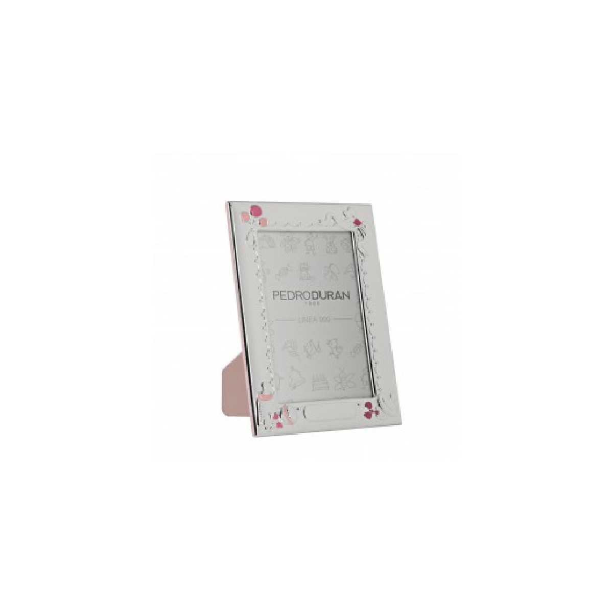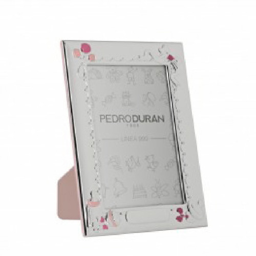 Marco plaque de plata con esmalte para foto de 10 x 15 cms de la prestigiosa marca PEDRO DURAN. La trasera es de madera lacada