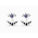 Pendientes en forma de ojo con diseño ear jacket, elaborados en metal bañado en plata y adornados con un cristal azul facetado.