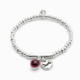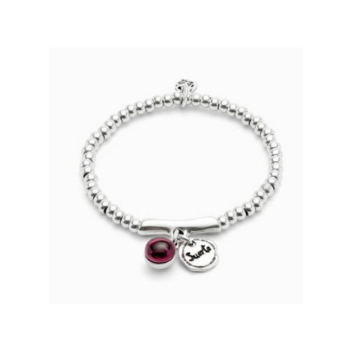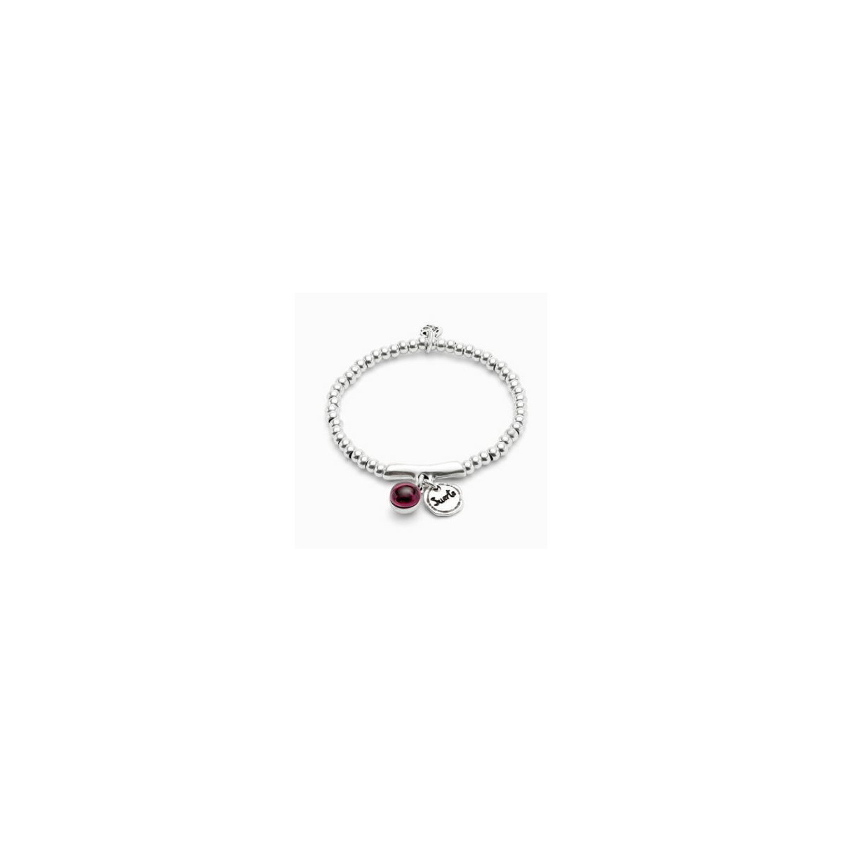 Esta pulsera bañada en plata combina cuentas redondeadas con una barra central y dos charms llenos de significado: una gota de cristal de Murano en tono morado, símbolo de introspección y sabiduría, y una medalla grabada con la palabra “Suerte”, para llevar contigo una dosis extra de buena energía.
