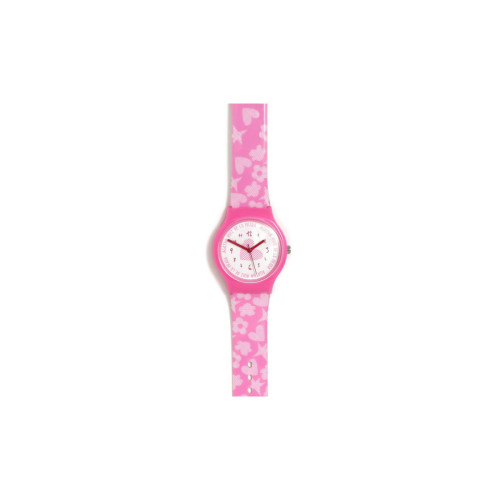 Reloj con caja de plástico, correa sándwich-band de PVC multicolor, hebilla de acero (maquinaria japonesa Seiko. Reloj pequeño de pila con correa de PVC. NO SE PUEDE MOJAR.