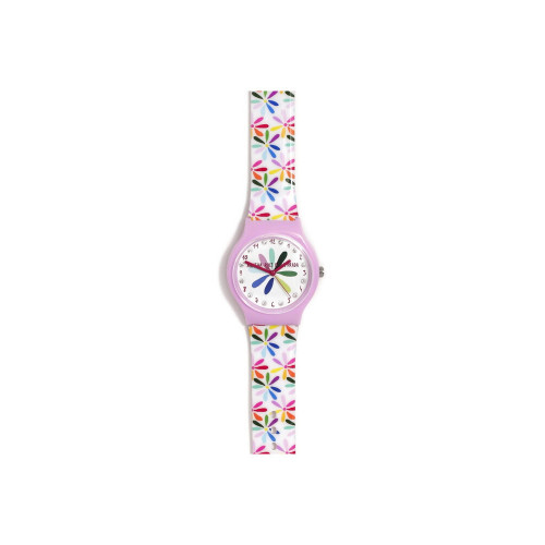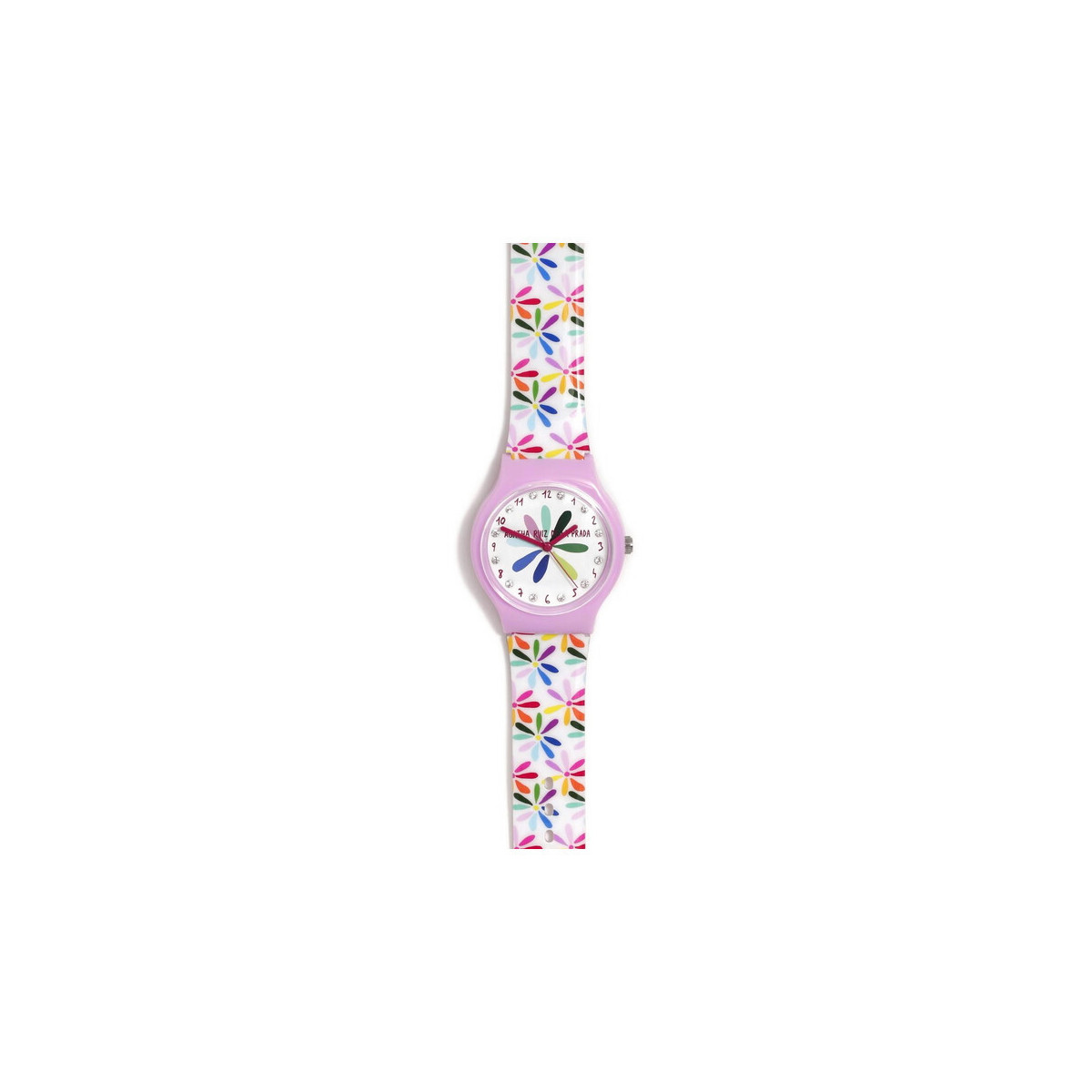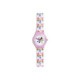 Reloj con caja de plástico, correa sándwich-band de PVC multicolor, hebilla de acero (maquinaria japonesa Seiko. Reloj pequeño de pila con correa de PVC. NO SE PUEDE MOJAR.