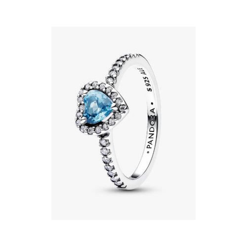 Todo corazón, todo brillo. Nuestro anillo en plata de primera ley se presenta con un cristal sintético elevado con forma corazón de color azul claro rodeado por un halo de pavé y la mitad del eje decorada con pavé.