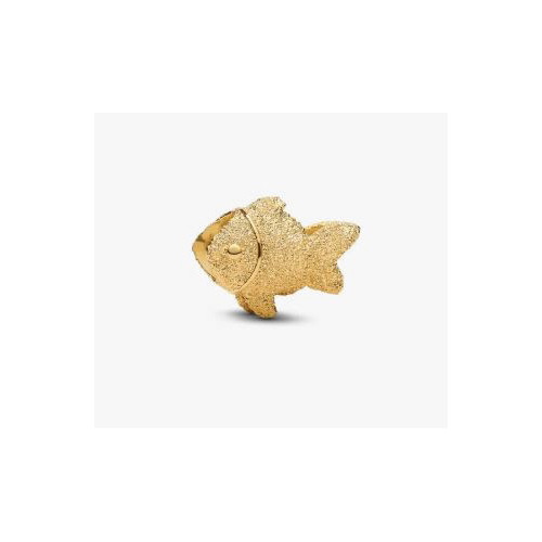 Déjate llevar. Este charm mini de un pez creado con un recubrimiento de oro de 14k brilla gracias a la textura creada con puntas de diamante y simboliza la libertad y la energía serena.