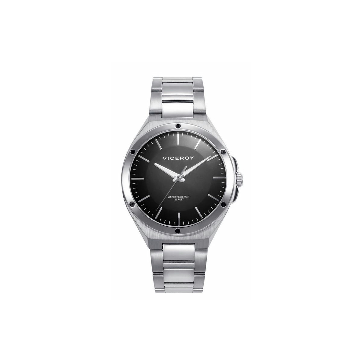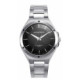 Un elegantísimo reloj de acero de tres agujas para hombre, caja y esfera negra con agujas e índices plateados. El complemento perfecto, el fiel escudero, el amigo que nunca te falla, una joya en tu muñeca. Un reloj que lo es todo.