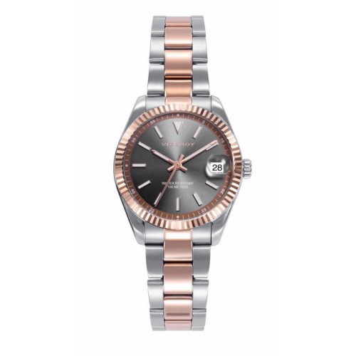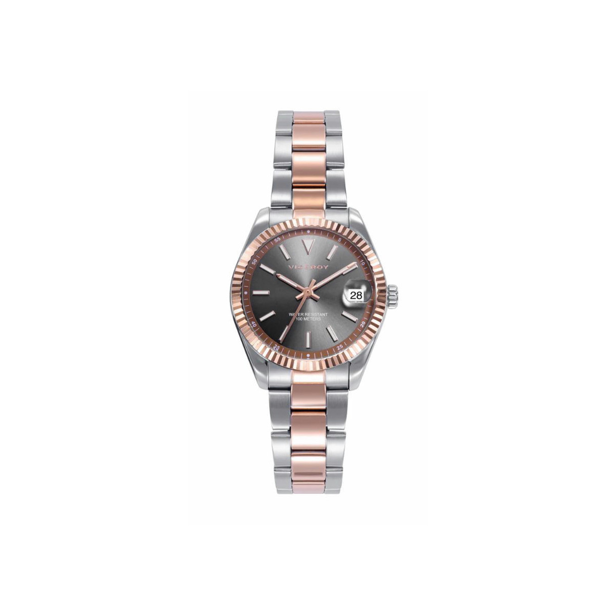 Un reloj de mujer Viceroy destaca por su elegante diseño de tres agujas, con una sofisticada caja y brazalete bicolor en IP rosa. Su esfera gris aporta un toque de modernidad y distinción.